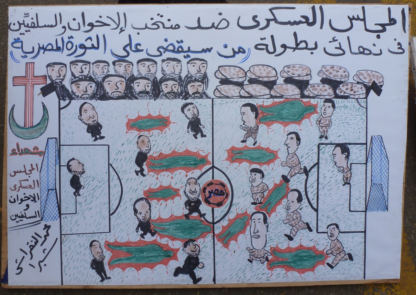 Football game between SCAF and the Salafi and Muslem Brotherhood teams on who will destroy the Revolution first.